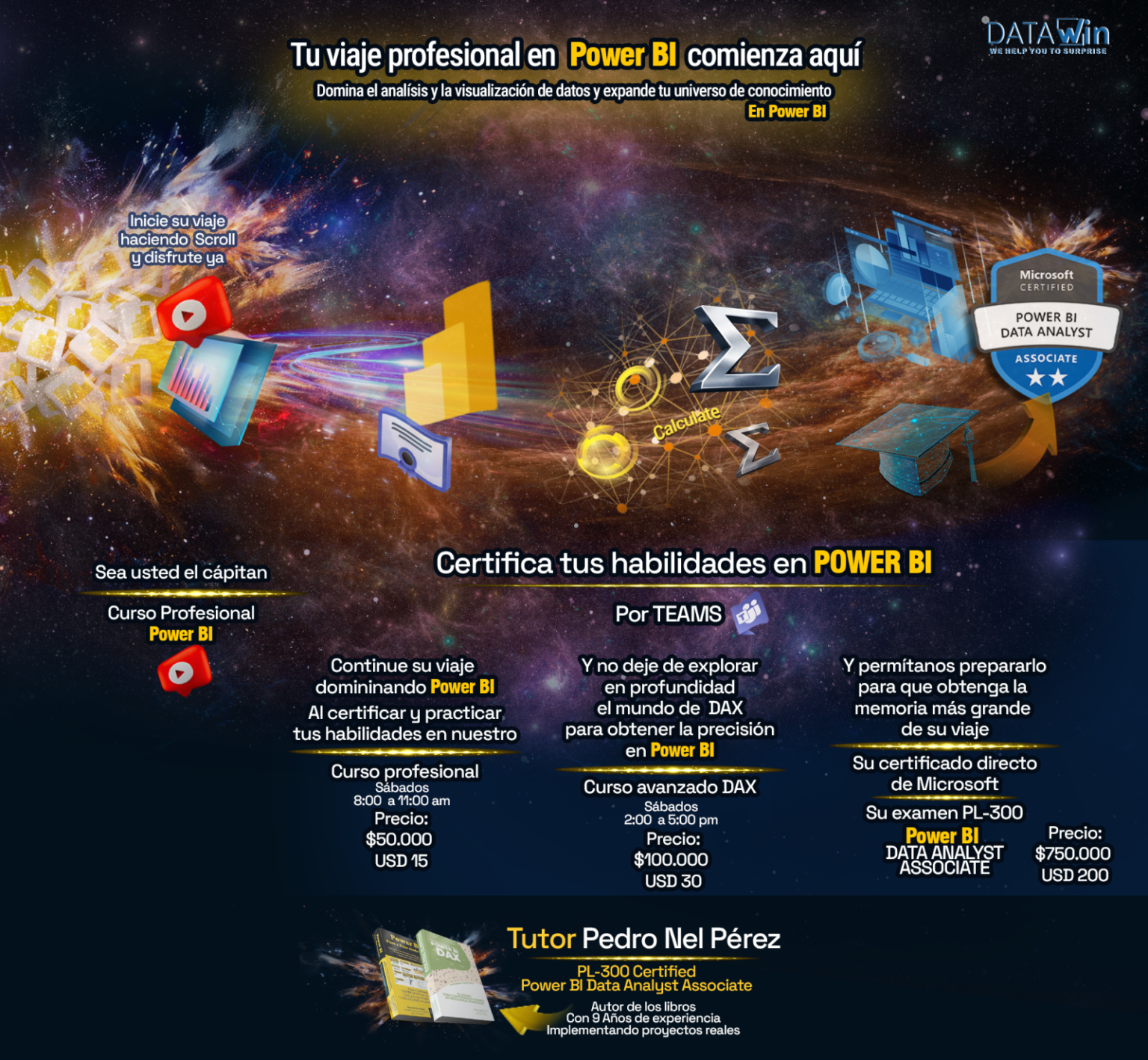 Su entrenamiento será realizado directamente por Pedro Nel Pérez quien ha realizado el examen de Power BI en tres oportunidades, autor de los libros Power BI paso a paso desde cero y 9 años de experiencia realizando proyectos reales y entrenamientos